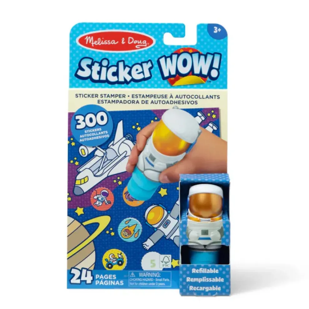 - Melissa & Doug Sticker WOW!™ is a whole new way to play with stickers – use the cute, collectible character to stamp space-themed stickers on the 24-page Astronaut activity pad and on other creative art projects