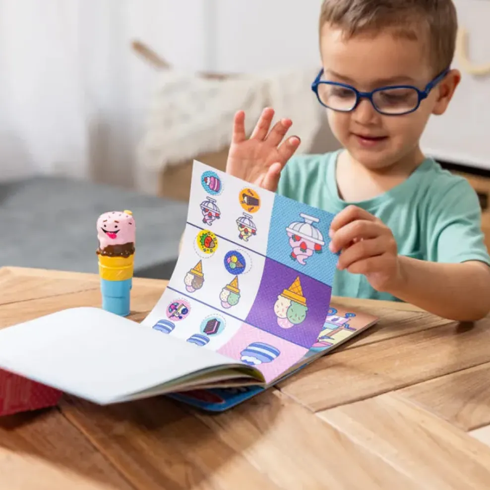 - Melissa & Doug Sticker WOW!™ is a whole new way to play with stickers – use the cute, collectible character to stamp sweets-themed stickers on the 24-page Ice Cream activity pad and on other creative art projects