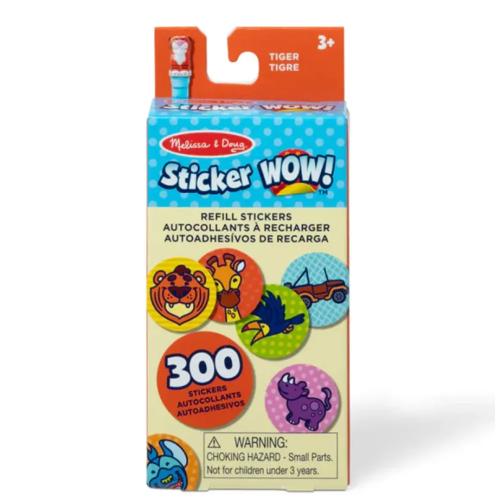 Melissa & Doug Sticker WOW!® is a whole new way to play with stickers! Pop the convenient sticker stack of 300 assorted Tiger safari-themed stickers into any Sticker WOW® Sticker Stamper cartridge, and stamp away, anywhere, anytime! With 100 unique designs in every sticker stack, each sticker stamped is a surprise. Sticker WOW!® Refill Stickers are easy to remove and are great for creative arts and crafts projects. Tiger Refill Stickers are a natural complement to the Sticker WOW!® Pumpkin the Tiger sticker stamper, but they are compatible with all the cute and collectible Sticker WOW!® sticker stampers (sticker stamper not included). Sticker WOW!® promotes fine motor skills, encourages creative play, and it’s satisfying, fidget fun!
