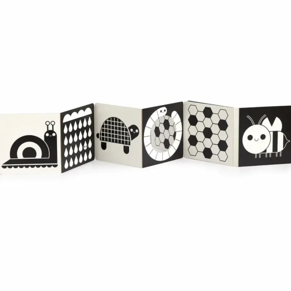 with the beautiful artwork in this double-sided accordion book that opens to stand up on the carpet, in the bed or in the crib making it the perfect addition for tummy time. Includes a baby-safe mirror so your baby can see their reflection!
