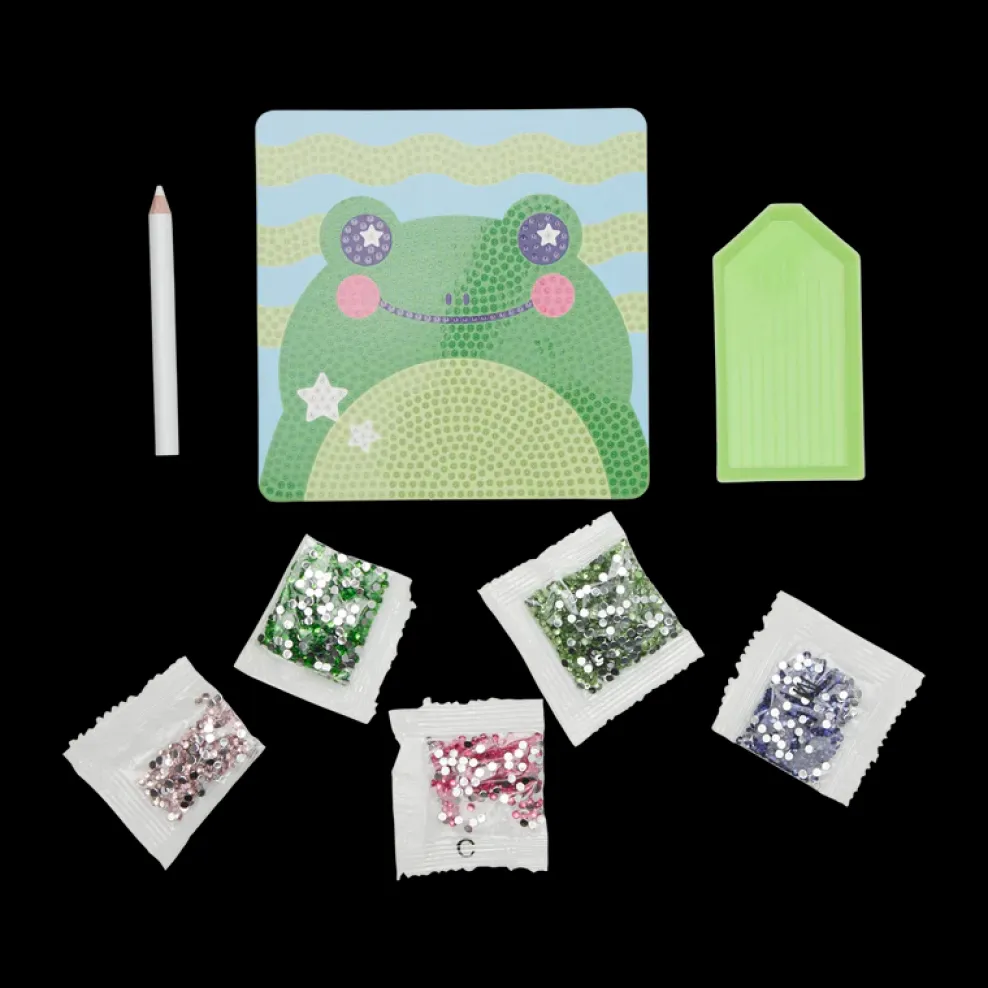 This funny frog is about to get a little fancy! OOLY’s gem art kit is a delightful way to spend a crafty afternoon. It features everything you need to give this little green guy a glowing appearance—including 6 packs of crafting gems, 1 wax pencil, and a gem tray.