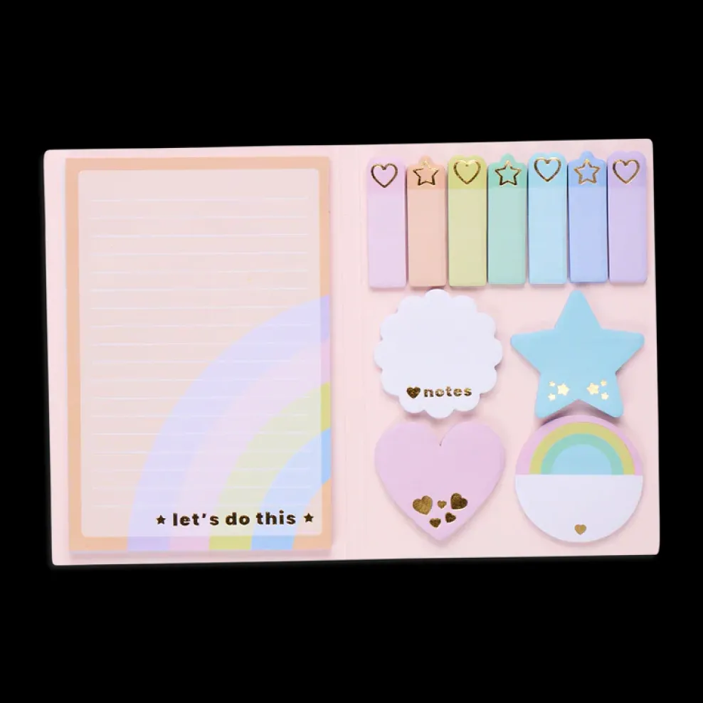Put the “pretty” in “pretty organized” with the Pastel Rainbows Side Notes Sticky Tab Set. These sticky note tabs and pads come in a variety of sizes, perfect for marking pages, writing reminders, or organizing notes.