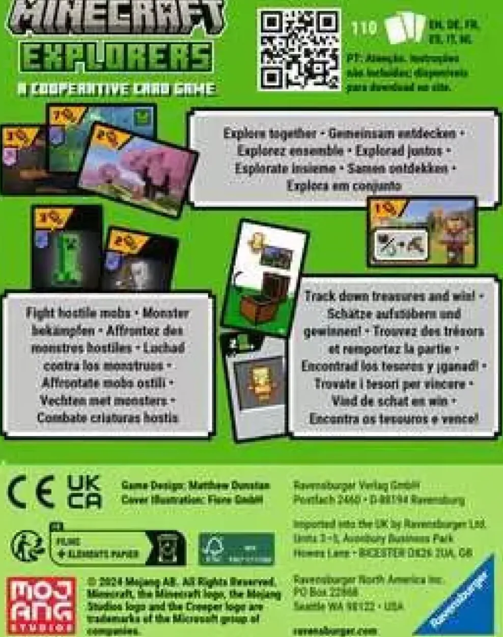 The cooperative card game in the world of “Minecraft”! Together you explore the picturesque landscapes from the world-famous video game and search for hidden treasures. Use helpful tools, fight dangerous monsters and manage your limited actions well. Will you be able to fill your chests with the treasures you are looking for before you are overwhelmed by the monsters and the game ends?