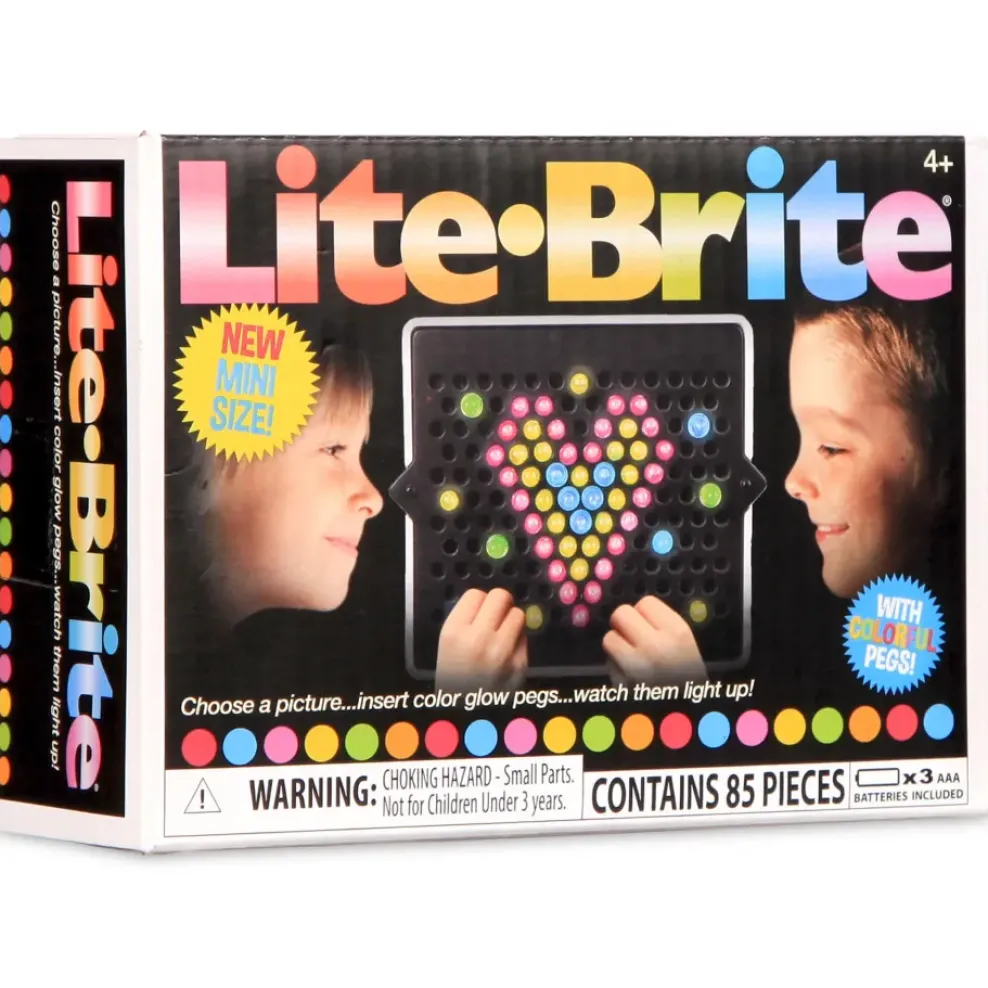 Everyone’s favorite Lite-Brite – now in a mobile miniature form! The Mini Lite Brite has all the creative possibilities of the original, packed into a 3″ board. Beat boredom and explore creativity with a no-mess outlet to create beautiful pictures. Kids can follow the design templates or create their own light-up designs with the multi-colored pegs.