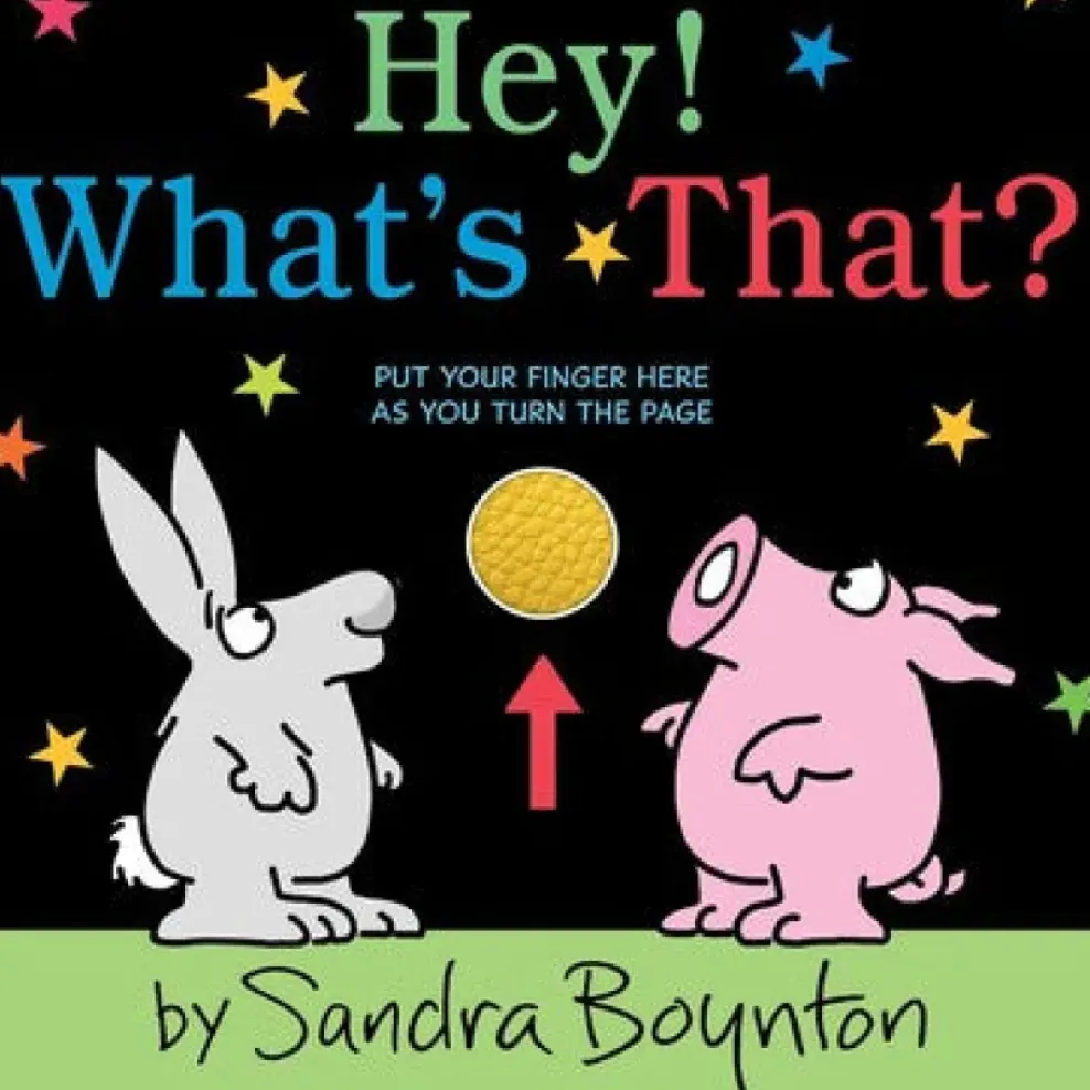 Hey! What’s That? invites readers to guess what comes next by touching a mysterious tactile element through a hole on each page. Once the page is turned, readers can keep their wiggly finger in place to join in the animal fun! Become a swinging elephant trunk, a swishy lion tail, or a waggly rabbit ear! The adventure is all in your hands!