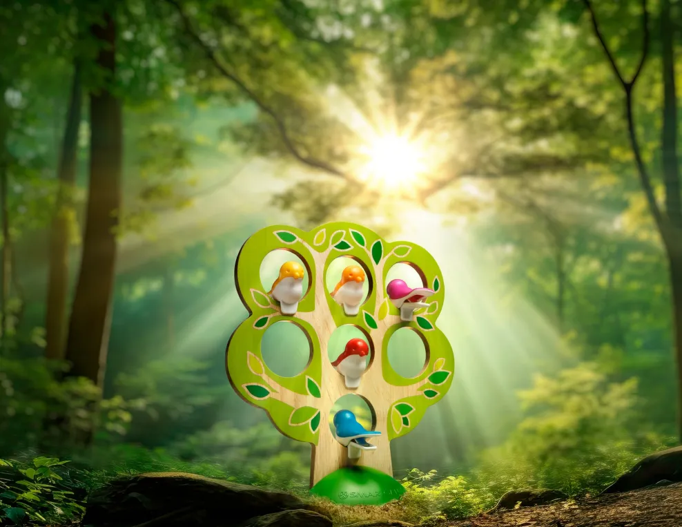 - Inside the Box: 1 wooden tree, 5 clip-on birds, 1 booklet with 60 challenges and solutions