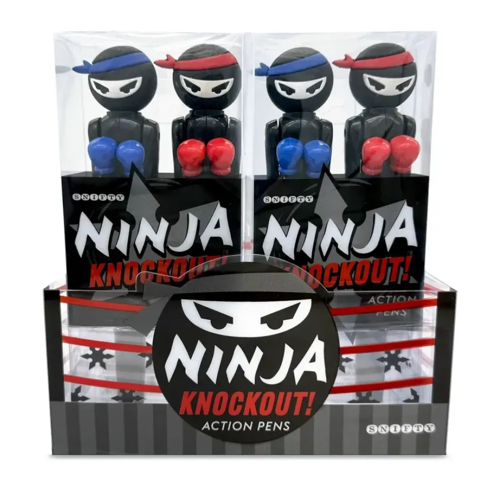 Knock out schoolwork with Ninja speed then challenge your friends to epic battles! Our action pens come beautifully packaged and ready for the ring with 2 in each pack! Each set includes 2 black ink action pens