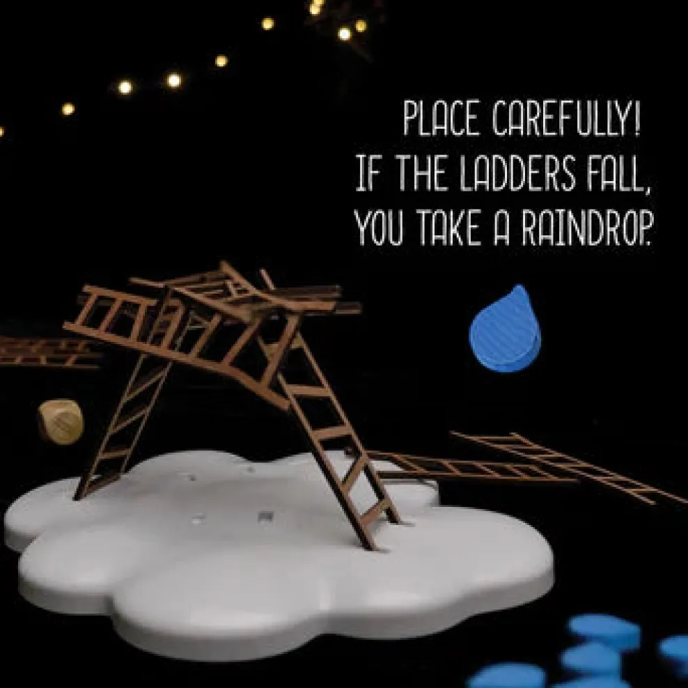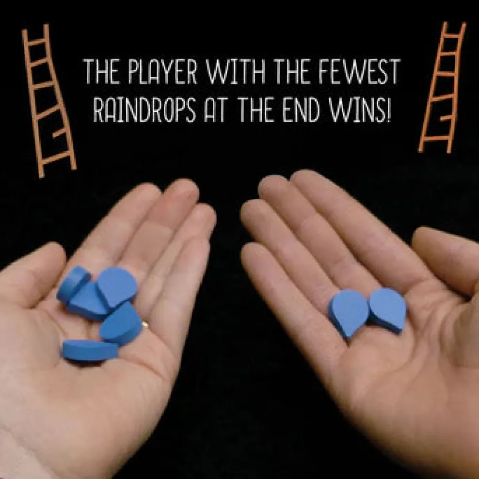 Raindrops are given to players whose ladders cause the structure to collapse; the winner is the player with the least amount of raindrops at the end of the game