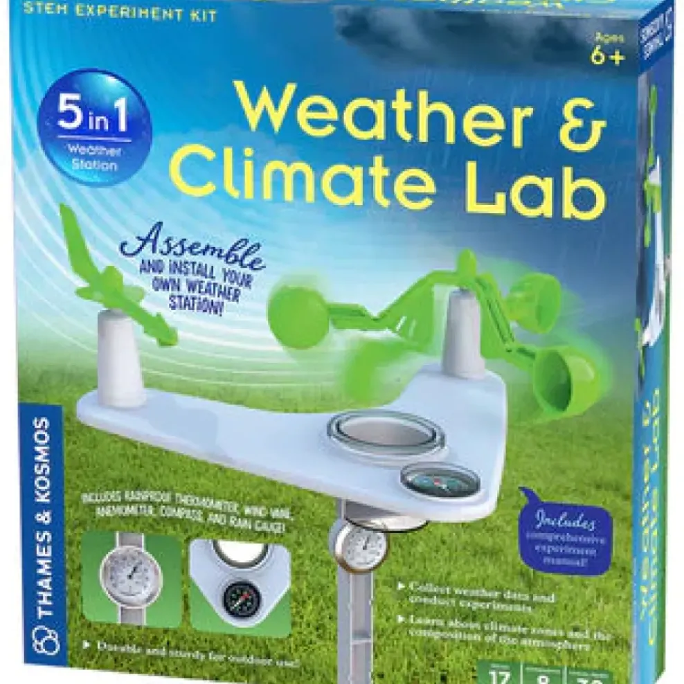 Calling all meteorologists-in-training! This compact, 5-in-1 weather station provides the tools to investigate specific weather phenomena and Earth’s climate system in general. Using the five unique attachments, you can execute a variety of climate-related experiments to get a firsthand look at why the weather is one of the most popular topics of conversation and scientific study. Install this sleek weather station outdoors and use the built-in wind vane, compass, rain gauge, anemometer (wind speed indicator), and thermometer to measure weather data. The manual takes young scientists through eight hands-on experiments and includes pages to record observations. Bonus: Supplemental experiments using household experiments available online!