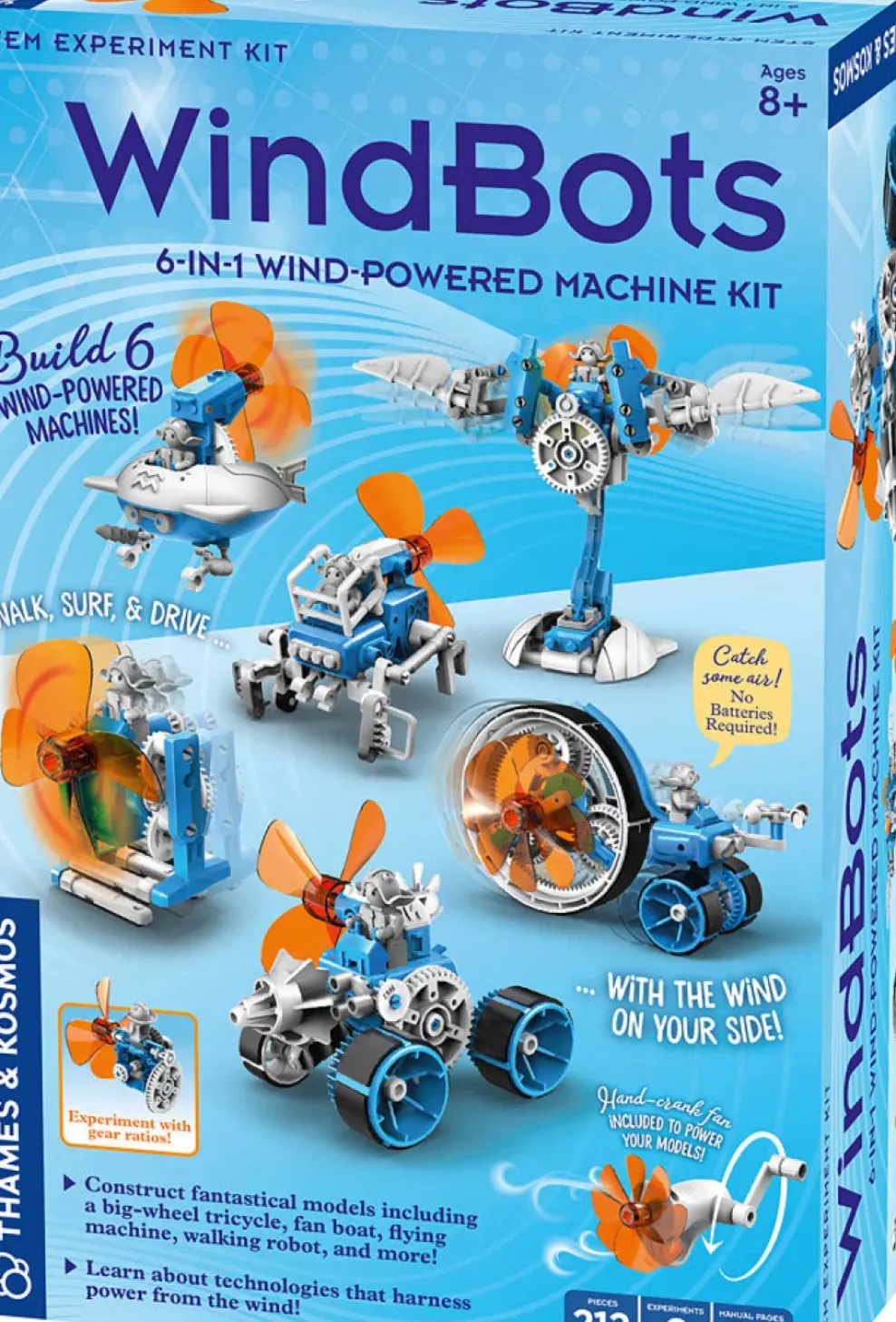 - 6-in-1 engineering kit: build six wind-powered models and a handheld wind generator. Start cranking the generator and watch them go!