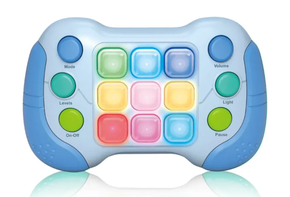 Embrace 80’s nostalgia with this handheld version of a blast from the past: Whack Attack! Kids (and adults!) release extra energy and build focus as they follow the flashing lights in 5 different 1-player games. Choose from hamster, memory, chase, light, and music modes. Volume and lights are adjustable and players can even pause the game! Great after school, travel, or pre-dinner entertainment. Requires 3 AAA batteries, not included. From THiN AiR Brands, for ages 4+ yrs.